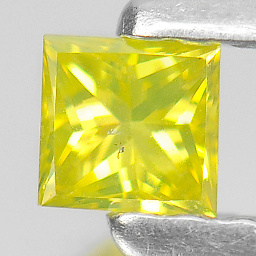 Yellow Loose Diamond 0.14 Ct. Square Princess Cut 3 x 2.8 Mm. Natural Belgium