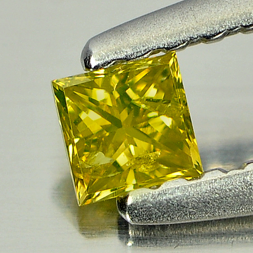 Yellow Loose Diamond 0.14 Ct. Square Princess Cut 2.8 x 2.8 Mm. Natural Belgium