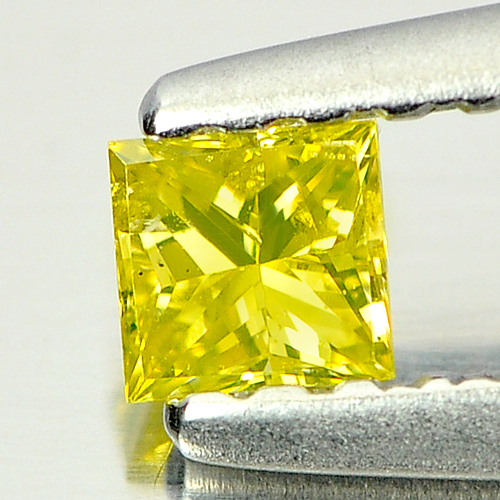 Yellow Loose Diamond 0.14 Ct. Square Princess Cut 2.9 x 2.9 Mm. Natural Belgium