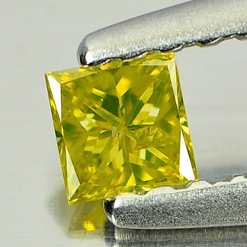 Yellow Loose Diamond 0.12 Ct. Square Princess Cut 2.9 x 2.9 Mm. Natural Belgium