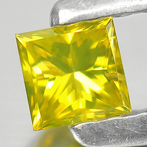 Yellow Loose Diamond 0.17 Ct. Square Princess Cut 3 x 3 x 2 Mm. Natural Belgium