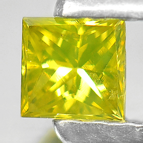 Yellow Loose Diamond 0.14 Ct. Square Princess Cut 3 x 3 x 2 Mm. Natural
