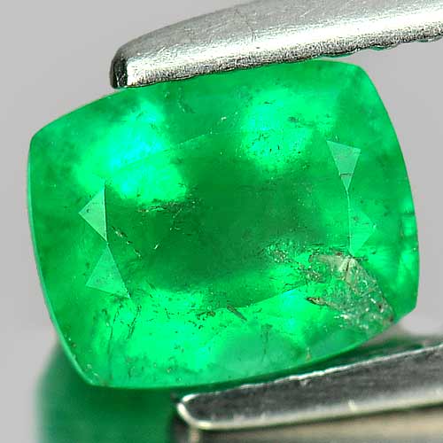 Green Emerald 1.32 Ct. Cushion Shape 7.2 x 5.9 Mm. Natural Gemstone Unheated