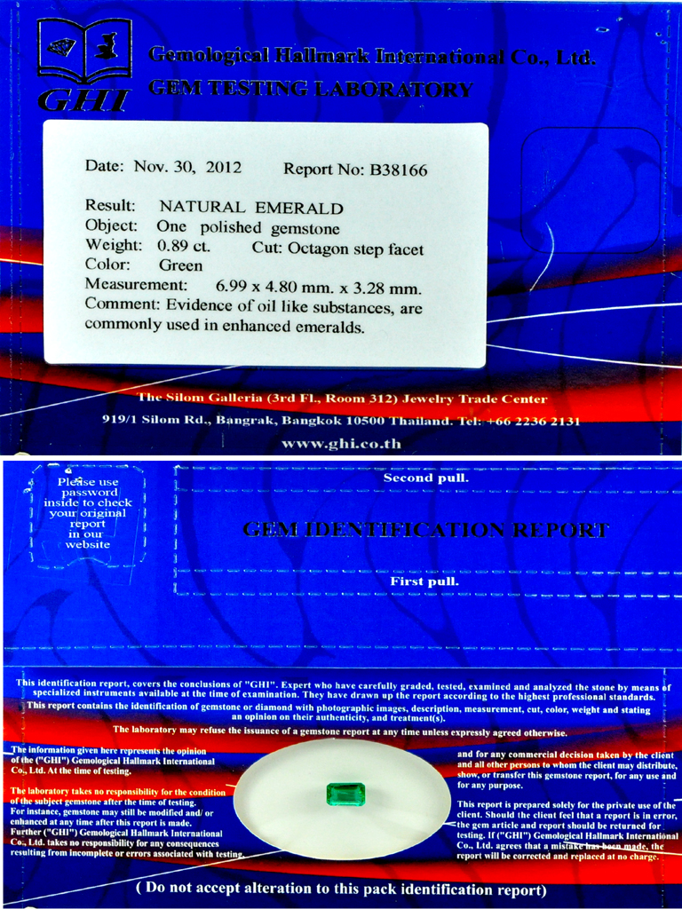 Certified 0.89 Ct. Octagon Shape 6.99 x 4.80 Mm. Natural Green Emerald Gemstone