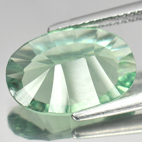 Green Fluorite 5.02 Ct. Oval Concave Cut 14.2 x 10.2 Mm. Natural Gem Brazil