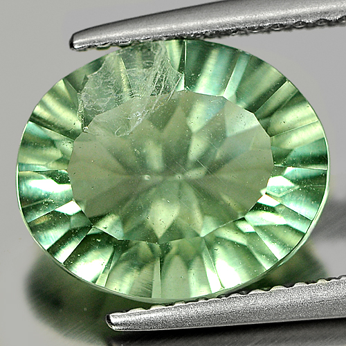 Unheated 4.28 Ct. Oval Concave Cut Natural Gemstone Green Fluorite From Brazil