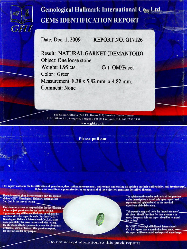 Certified 1.95 Ct. Oval Shape Natural Green Demantoid Gernet