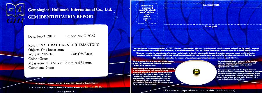 Certified 2.06 Ct. Oval Shape Natural Gemstone Green Demantoid Garnet Unheated