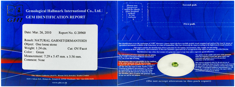 Certified Demantoid Garnet Green 1.24 Ct. Oval Shape Natural Gemstone Unheated