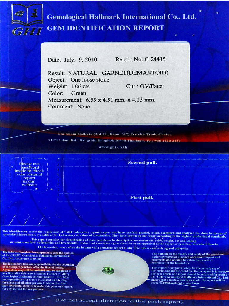 Certified Demantoid Garnet 1.06 Ct. Oval Natural Gemstone Unheated Madagasgar