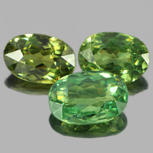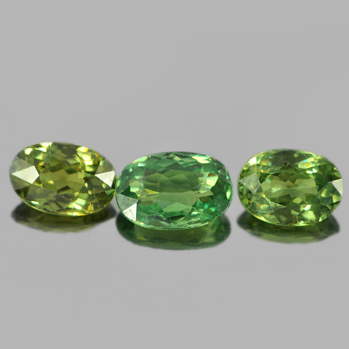 Green Demantoid Garnet 1.63 Ct. 3 Pcs. Oval Shape Natural Gemstones Unheated