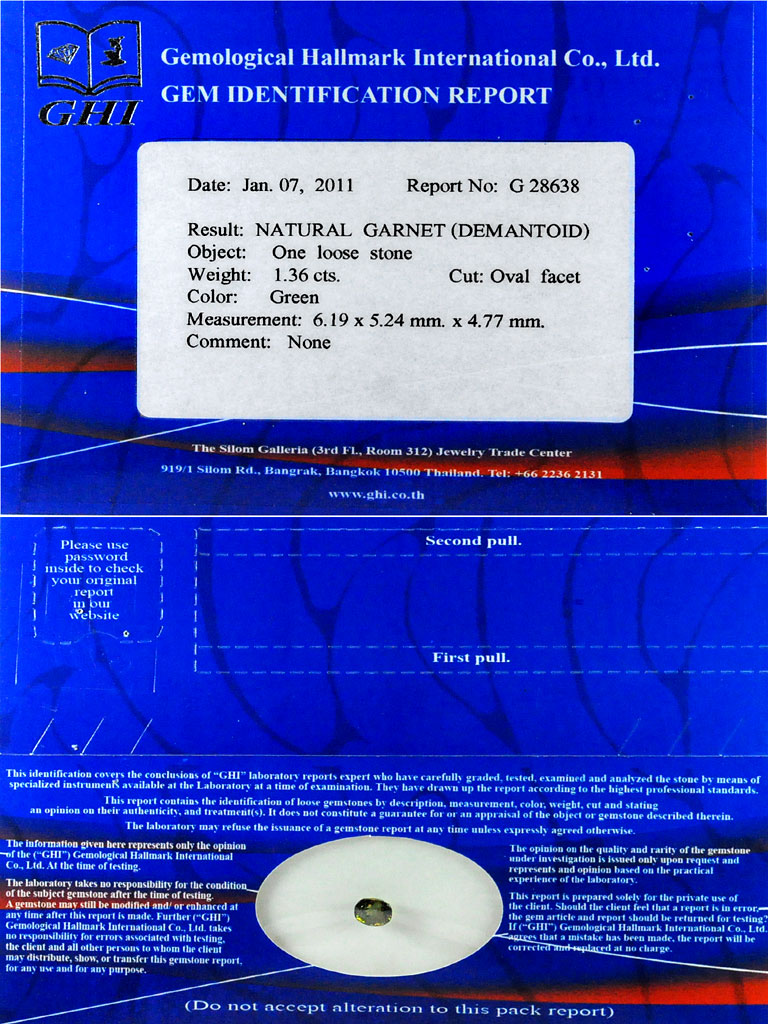 Certified Demantoid Garnet 1.36 Ct. Oval Shape 6.19 x 5.24 Mm. Natural Gemstone