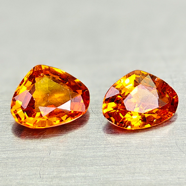 Natural Orange Spessartine Garnet 1.49 Ct. 2 Pcs Pear Shape 6.7 x 5.5 Mm Gems