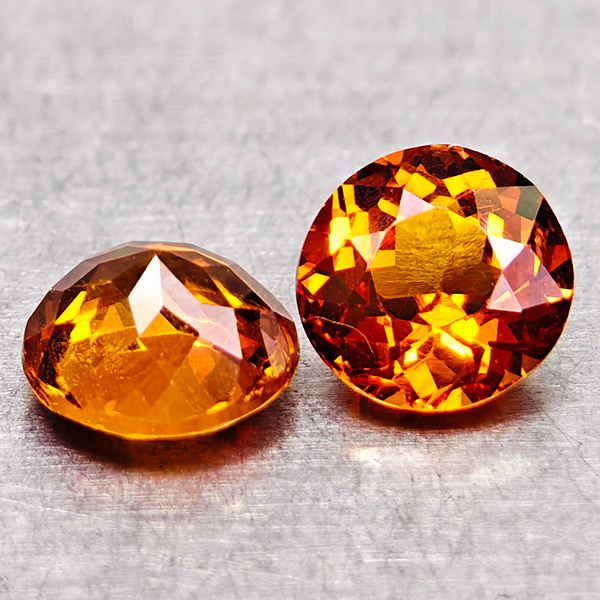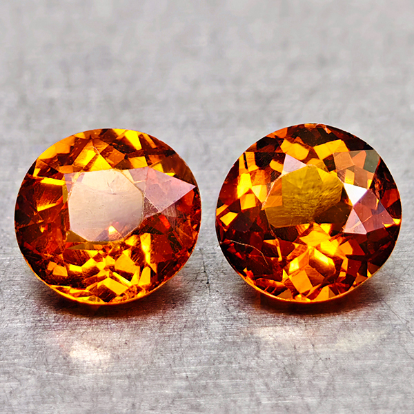 Natural Orange Red Spessartine Garnet 1.17 Ct. 2 Pcs Round Shape 4.8 Mm Gems