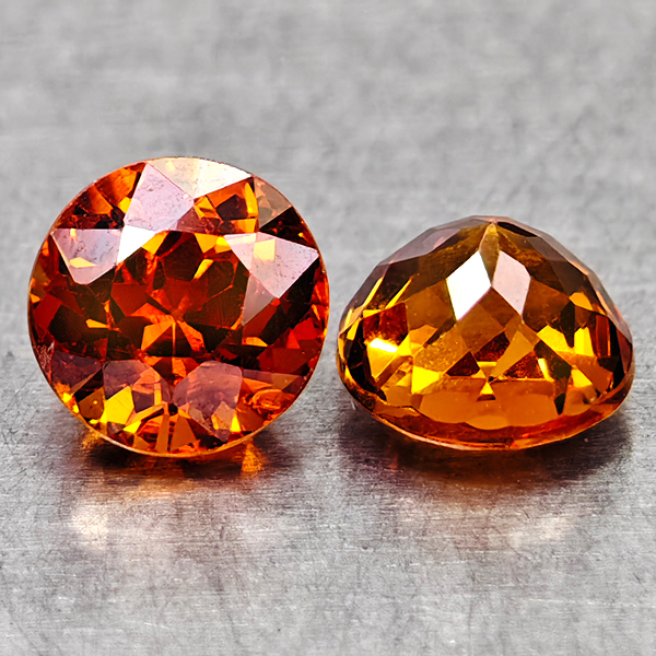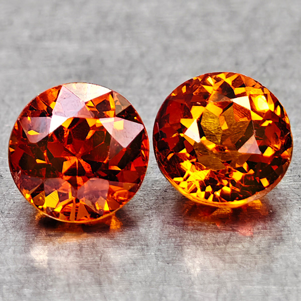 Natural Orange Red Spessartine Garnet 1.18 Ct. 2 Pcs Round Shape 4.5 Mm Gems