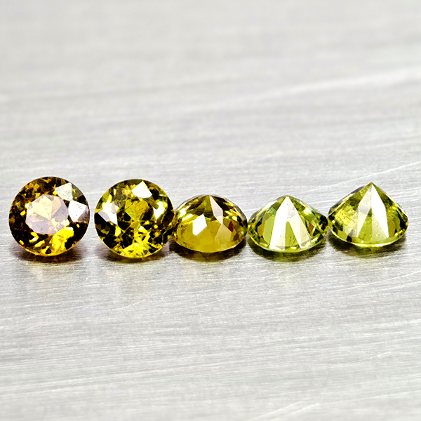 Natural Yellowish Green Demantoid Garnet 1.04 Ct. 5 Pcs Round Diamond Cut
