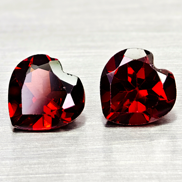 Natural Orangish Red Garnet 2.62 Ct. 2 Pcs Heart Shape 7 x 6.9 MM Gemstones