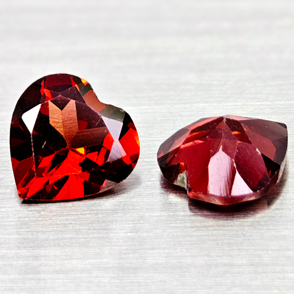 Natural Orangish Red Garnet 2.55 Ct. 2 Pcs Heart Shape 7 x 6.9 MM Gemstones