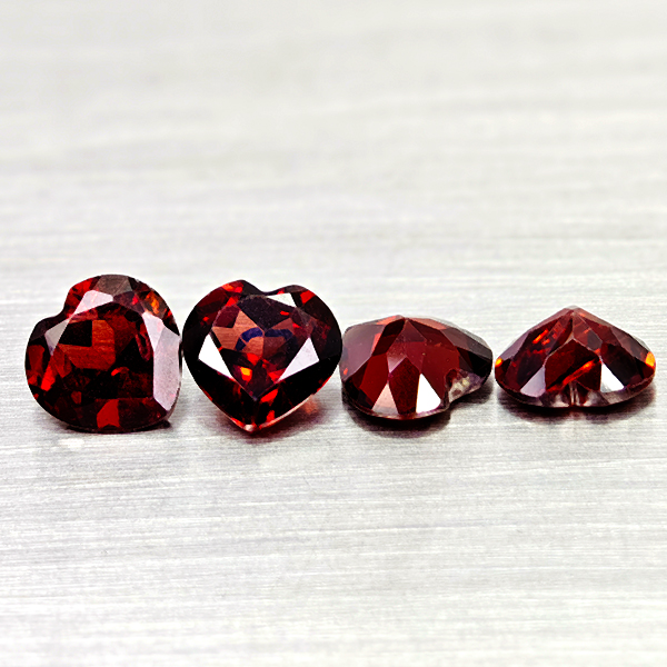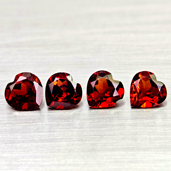 Natural Orangish Red Garnet 5.25 Ct. 4 Pcs Heart Shape Gemstones From Tanzania