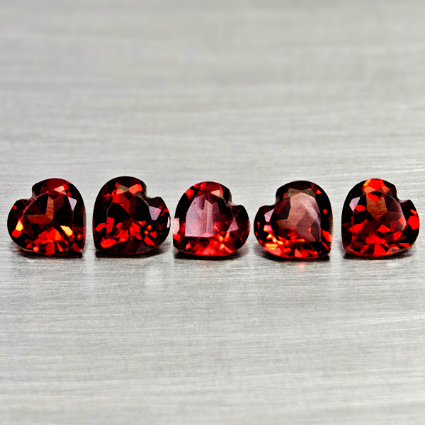 Natural Purplish Red Rhodolite Garnet 4.52 Ct. 5 Pcs Heart Shape 6 Mm Gemstones