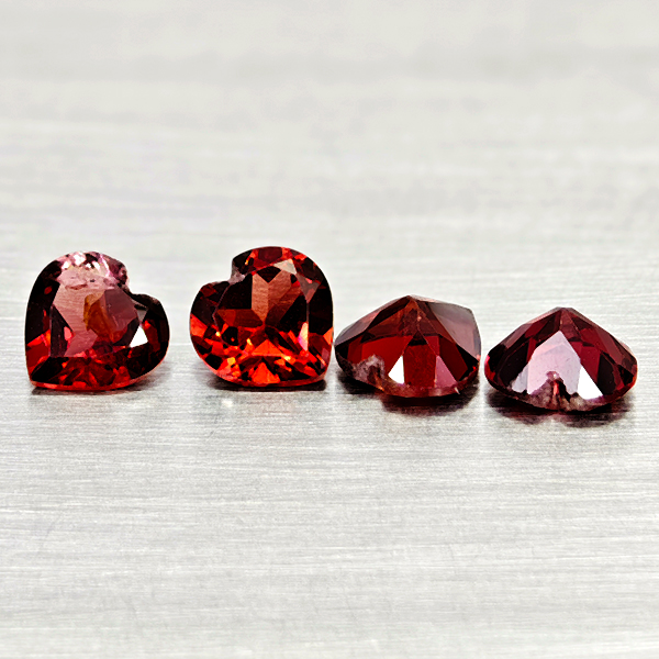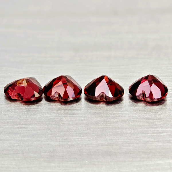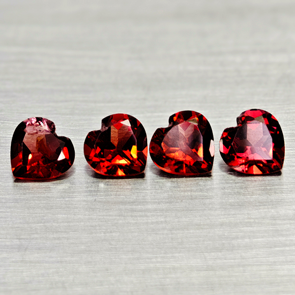 Natural Purplish Red Rhodolite Garnet 3.43 Ct. 4 Pcs Heart Shape 5.9 Mm Gemstone