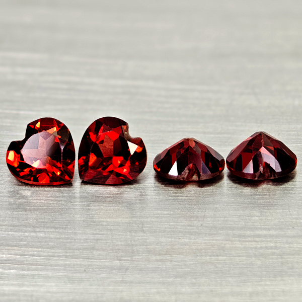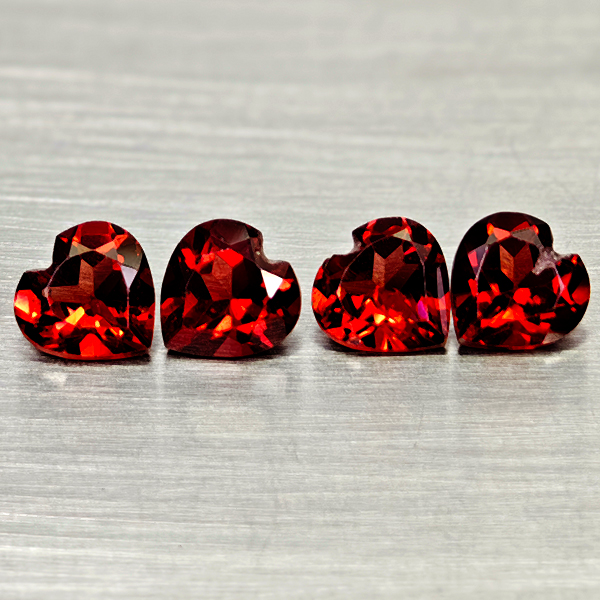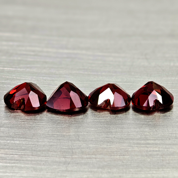 Natural Purplish Red Rhodolite Garnet 3.73 Ct. 4 Pcs Heart Shape 6.1 x 5.9 Mm