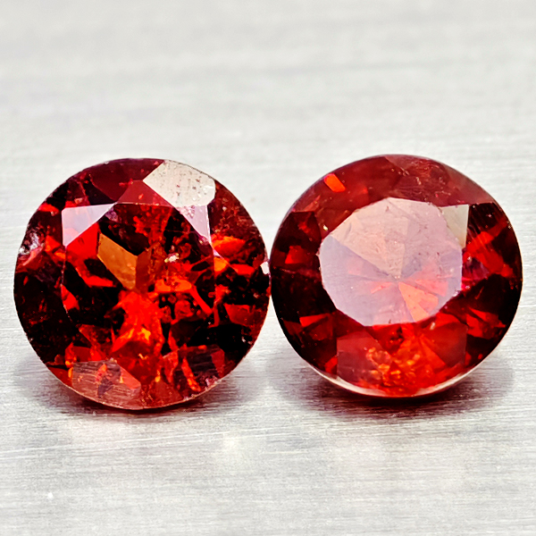 Natural Orangish Red Garnet 1.27 Ct. 2 Pcs Round Shape 5 Mm Gemstones