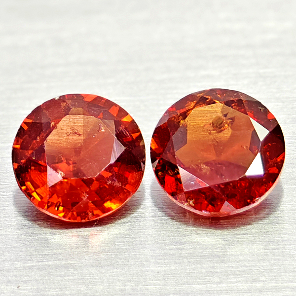 Natural Orangish Red Garnet 1.06 Ct. 2 Pcs Round Shape 5 Mm Gemstones