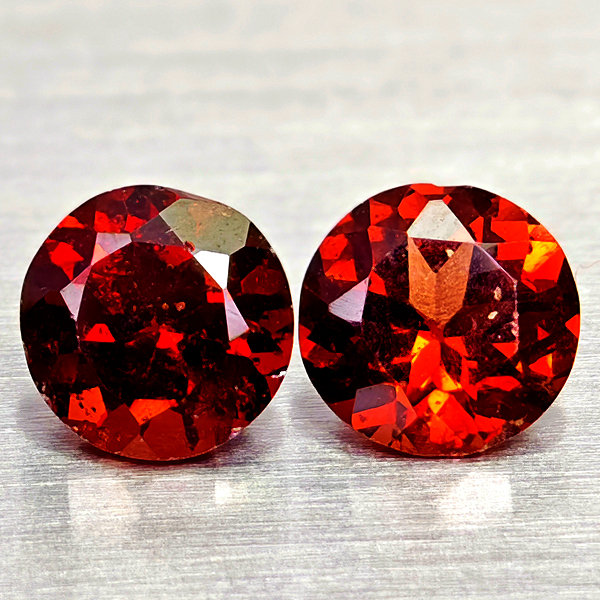 Natural Orangish Red Garnet 1.24 Ct. 2 Pcs Round Shape 5 Mm Gemstones