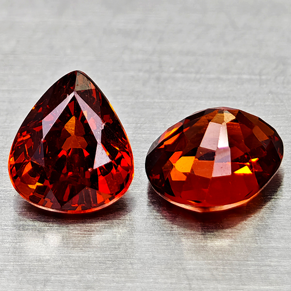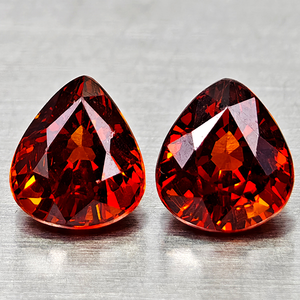 Natural Orangish Red Spessartine Garnet 1.79 Ct. 2 Pcs Pear Shape Gemstones