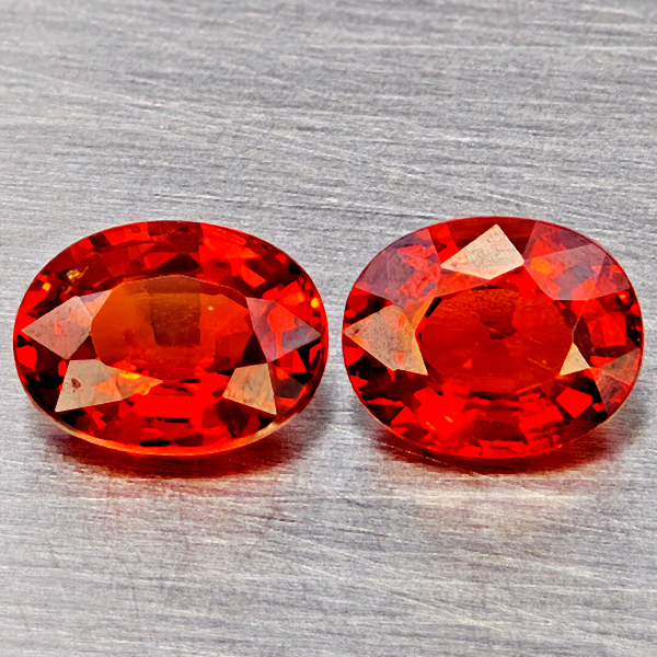 Natural Orangish Red Spessartine Garnet 1.80 Ct. 2Pcs Oval Shape 6.5 x 5 Mm Gemstones From Namibia