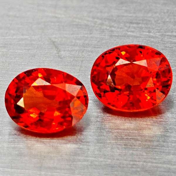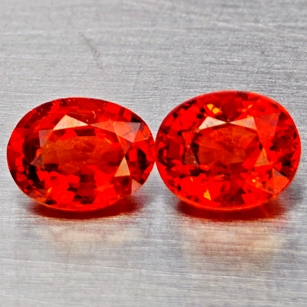 Natural Orange Red Spessartine Garnet 1.52 Ct. 2 Pcs Oval Shape 5.6 x 4.4 Mm Gemstones Namibia
