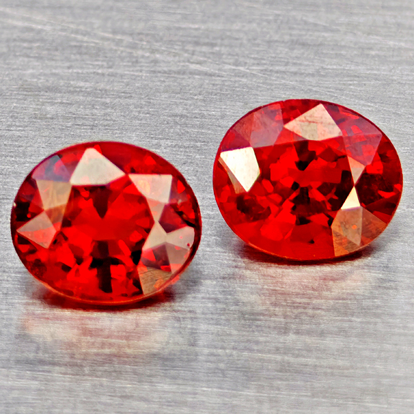 Natural Orange Red Spessartine Garnet 1.71 Ct. 2 Pcs Oval Shape 5.9 x 4.9 Mm