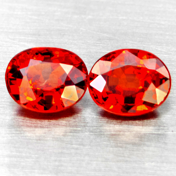 Natural Orange Red Spessartine Garnet 1.62 Ct. 2 Pcs Oval Shape 6 x 5.8 Mm