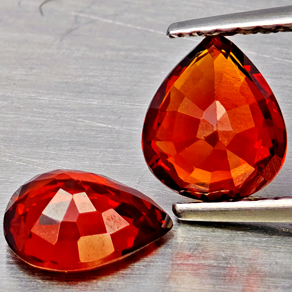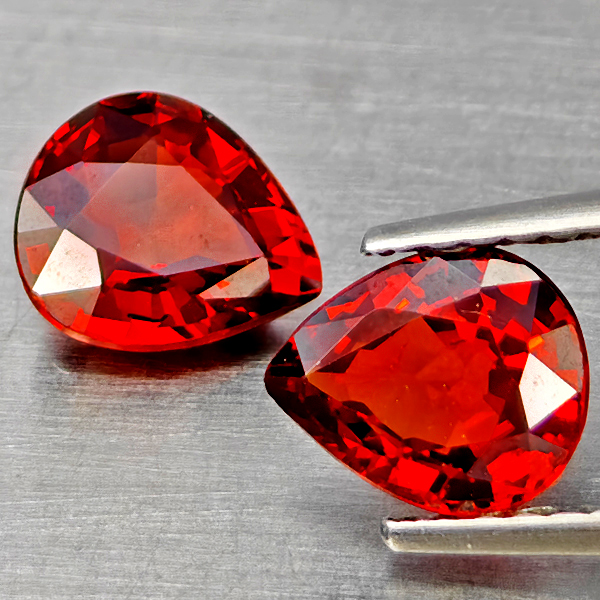 Natural Orangish Red Spessartine Garnet 2.24 Ct. 2 Pcs Pear Shape 6.8 x 5.7Mm Gemstones From Namibia