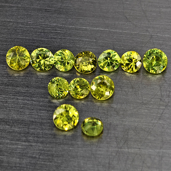 Natural Green Demantiod Garnet 0.52 Ct. 12 Pcs Round Diamond Cut 2.4 Mm Gemstones From Madagascar