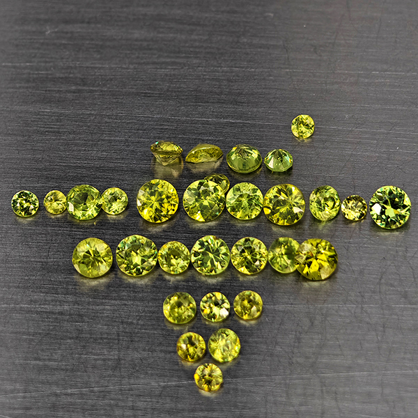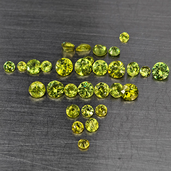 Natural Green Demantiod Garnet 1.21 Ct. 30 Pcs Round Diamond Cut 2.6 Mm Gemstones From Madagascar