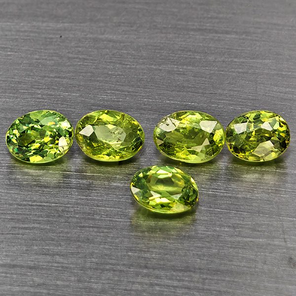 Natural Green Demantiod Garnet 1.24 Ct. 5 Pcs Oval Shape 4.2 x 3.2 Mm Gemstones From Madagascar