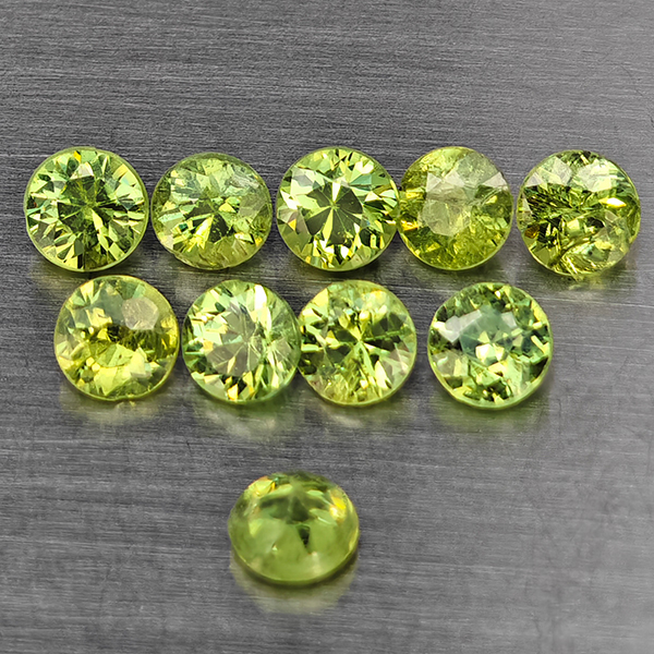Natural Green Demantiod Garnet 1.69 Ct. 10 Pcs Round Diamond Cut 3.3 Mm Gemstones From Madagascar