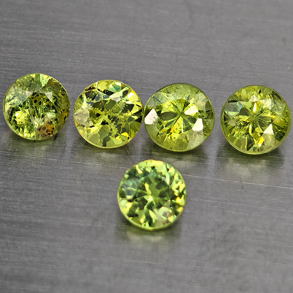 Natural Green Demantiod Garnet 0.84 Ct. 5 Pcs Round Diamond Cut 3.3 Mm Gemstones From Madagascar