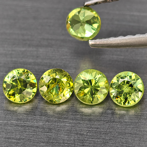 Natural Green Demantiod Garnet 0.86 Ct. 5 Pcs Round Diamond Cut 3.3 Mm Gemstones From Madagascar