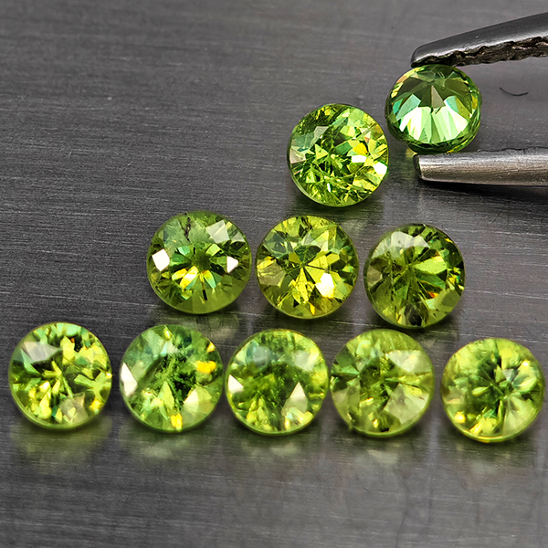Natural Green Demantiod Garnet 1.78 Ct. 10 Pcs Round Diamond Cut 3.3 Mm Gemstones From Madagascar