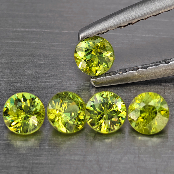 Natural Green Demantiod Garnet 0.82 Ct. 5 Pcs Round Diamond Cut 3.3 Mm Gemstones From Madagascar