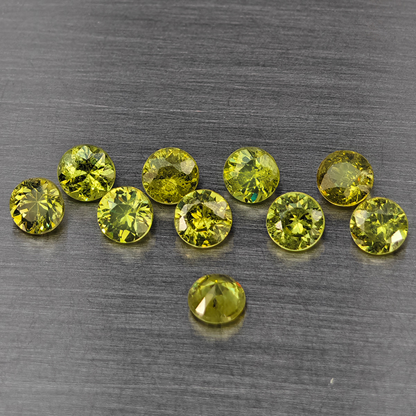 Natural Green Demantiod Garnet 1.43 Ct. 10 Pcs Round Diamond Cut 3 Mm Gemstones From Madagascar