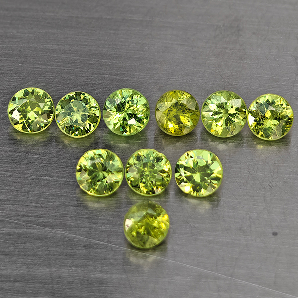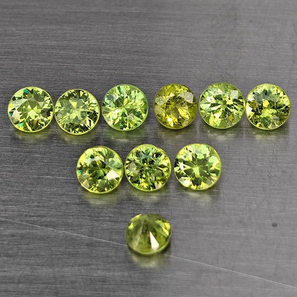 Natural Green Demantiod Garnet 1.17 Ct. 10 Pcs Round Diamond Cut 3 Mm Gemstones From Madagascar