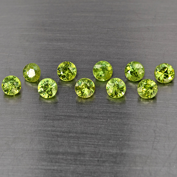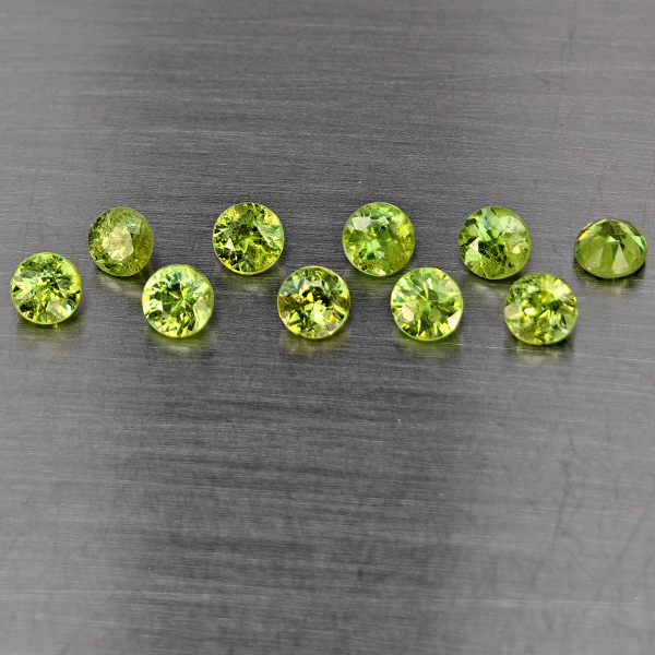Natural Green Demantiod Garnet 1.33 Ct. 10 Pcs Round Diamond Cut 3 Mm Gemstones From Madagascar