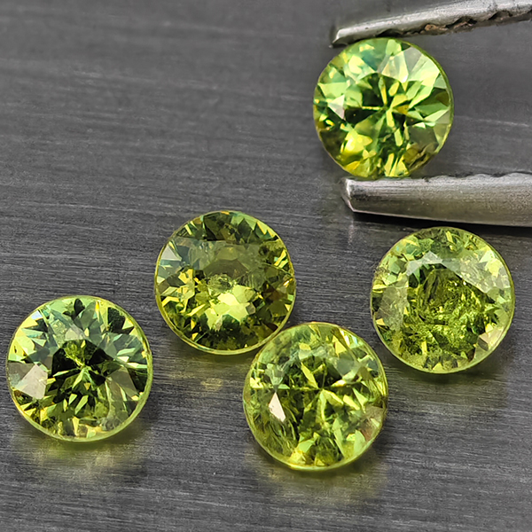 Natural Green Demantiod Garnet 0.91 Ct. 5 Pcs Round Diamond Cut 3.3 Mm Gemstones From Madagascar
