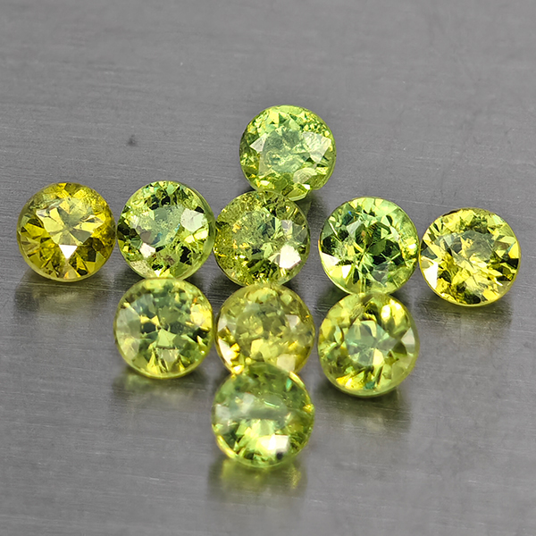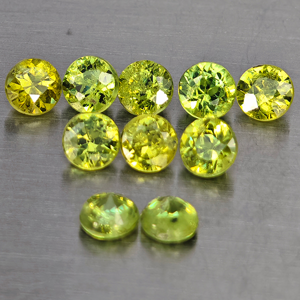 Natural Green Demantiod Garnet 1.42 Ct. 10 Pcs Round Diamond Cut 3 Mm Gemstones From Madagascar
