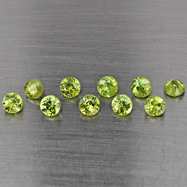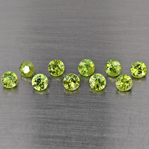 Natural Green Demantiod Garnet 1.47 Ct. 10 Pcs Round Diamond Cut 3 Mm Gemstones From Madagascar