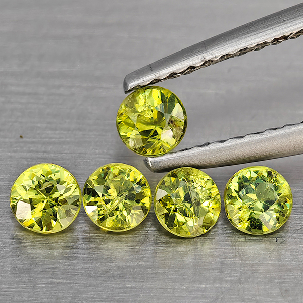 Natural Green Demantiod Garnet 0.94 Ct. 5 Pcs Round Diamond Cut 3.4 Mm Gemstones From Madagascar